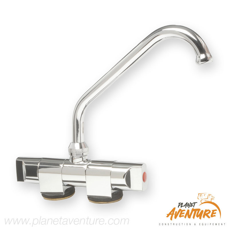 En laiton chromé. Il peut être installé dans l’évier pour laisser le comptoir complètement dégagé. 2 embouts 3/8" mâle