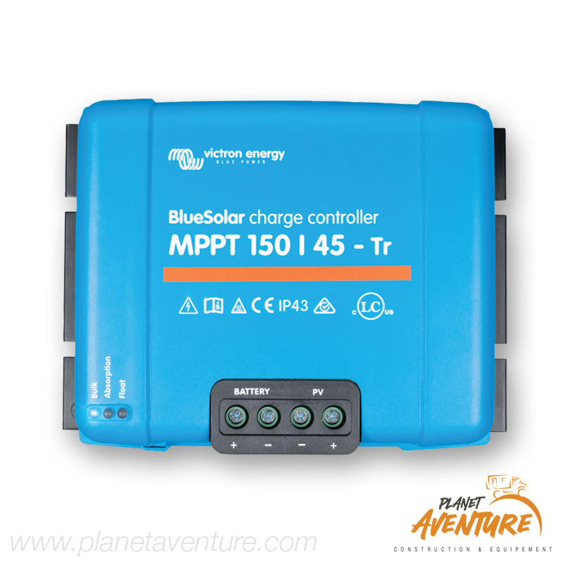 MPPT VICTRON 150/45 BlueSolar Tension de sortie calculée automatiquement pour respecter les courbes de charge de la batterie. Convient pour toutes batteries acides, gel, AGM ou lithium en 12 V ou 24 V Système Battery Life ajustant les périodes de charge et d’entretien pour optimiser la durée de vie de la batterie Panneau solaire jusqu'à 650W