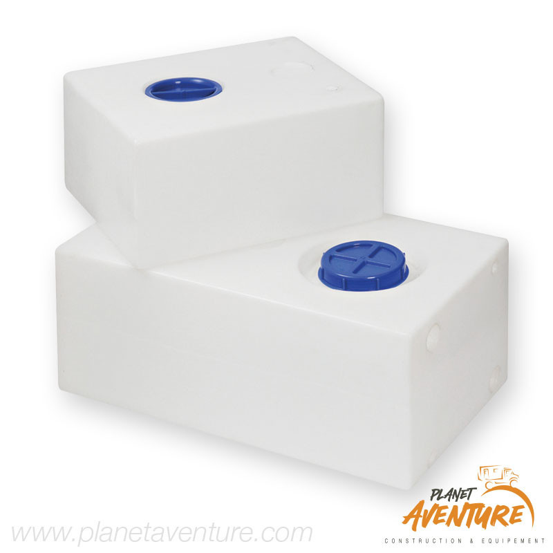 Réservoirs rigides en polyéthylène alimentaire fournis avec trappe de visite et 4 trous pré-filetés à perçer, entrées 1”1/4, sorties 1/2. Montage horizontal ou vertical. Réservoirs non cloisonnés. Autres tailles nous consulter.