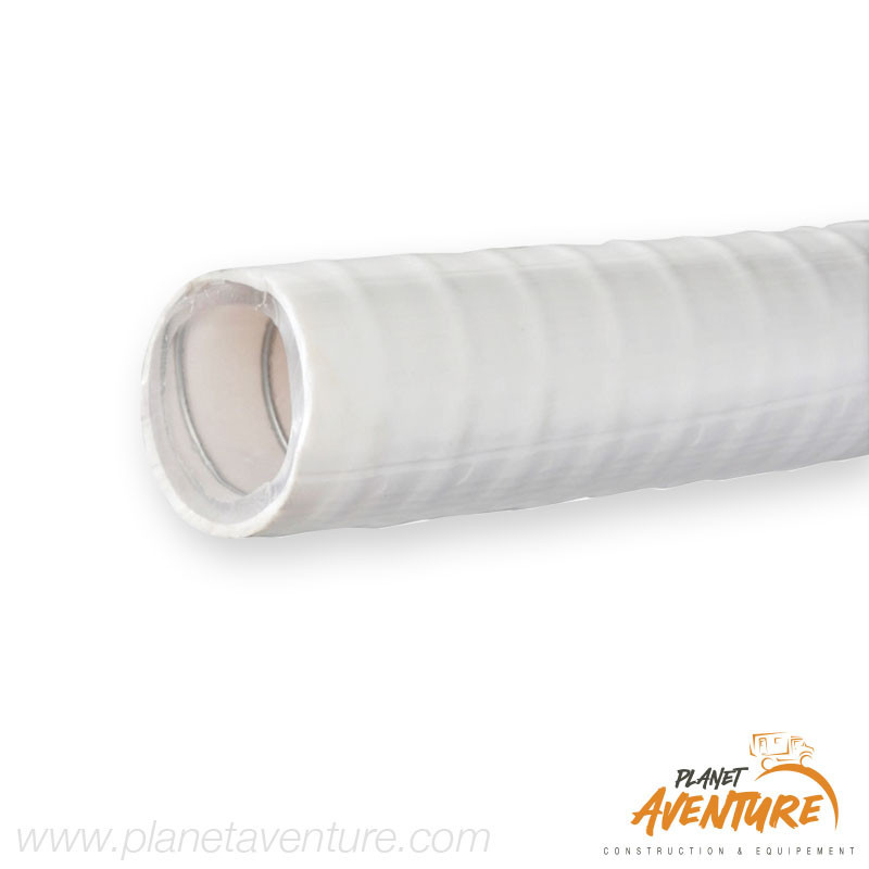 En PVC blanc anti-odeurs, avec spirale interne en acier, extrêmement flexible et résistant.